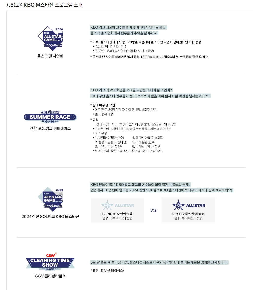 KBO 올스타전 상세 일정